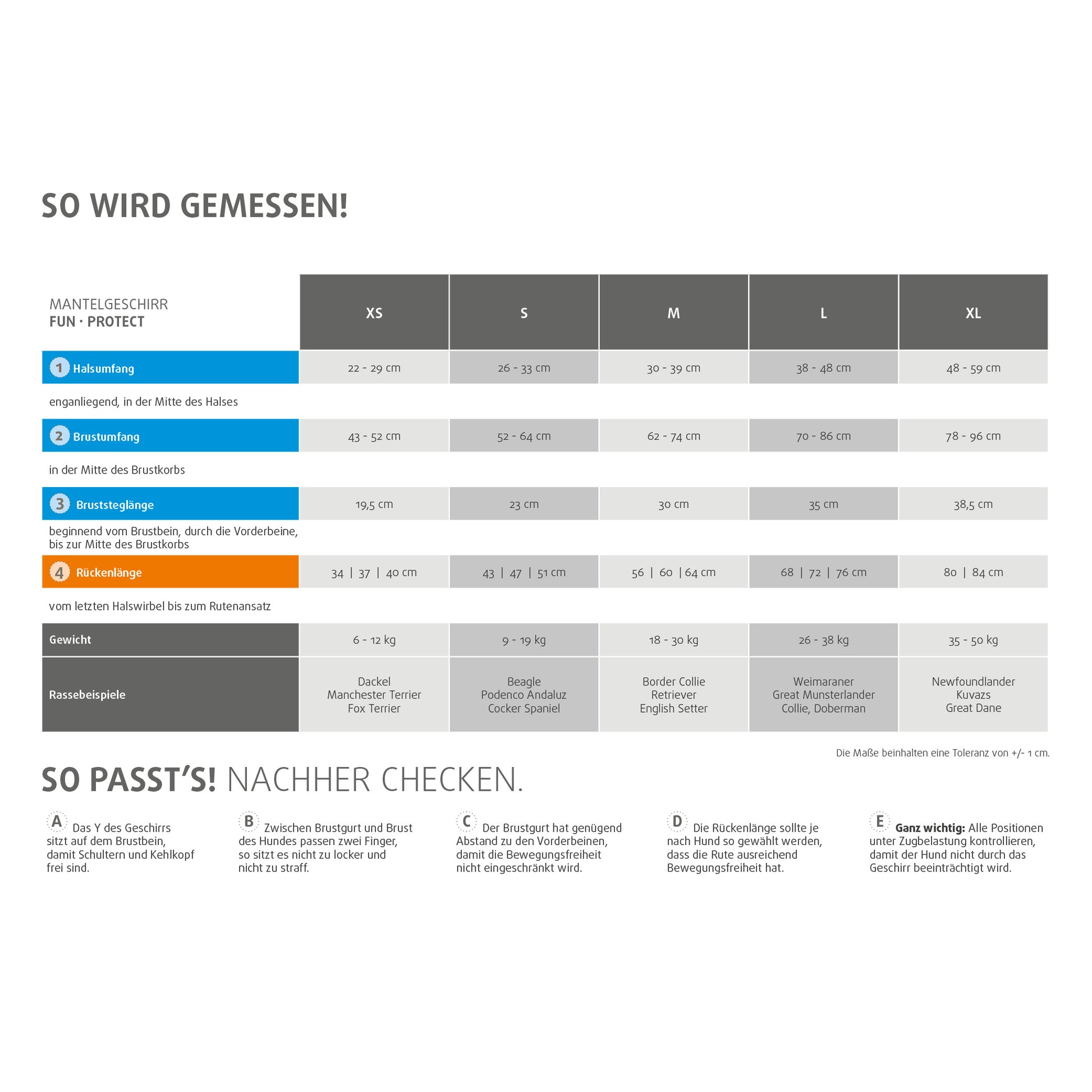 - Verstellbare Gurte im Hals und Brustbereich unterstützen eine passgenaue Einstellung