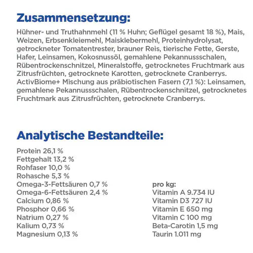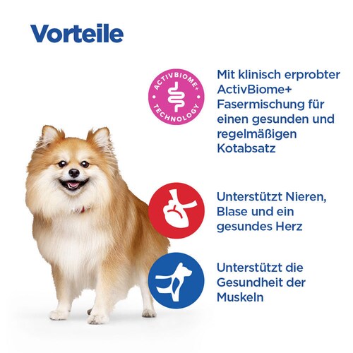 - Mit klinisch erprobter ActivBiome+ Fasermischung zur Förderung eines regelmässigen, gesunden Kotabsatzes
