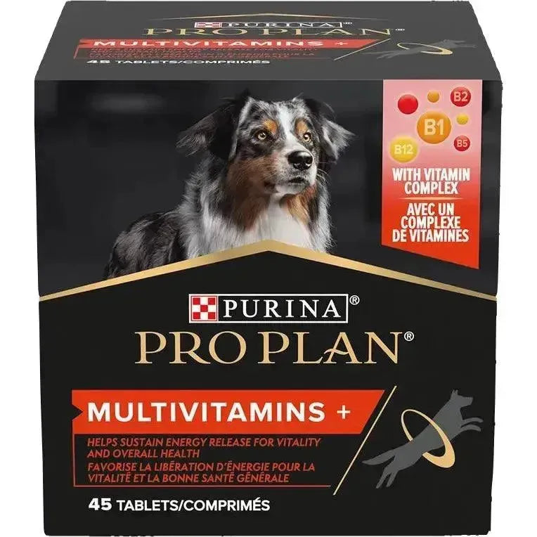 Purina Pro Plan Dog Supplement Multivitamin+ ist ein Ergänzungsfuttermittel in praktischer Tablettenform, das speziell entwickelt wurde, um ausgewachsene Hunde täglich mit wertvollen B-Vitaminen zu versorgen. Diese Vitamine unterstützen den Energiestoffwechsel, die Vitalität sowie eine gesunde Haut und ein glänzendes Fell. Die Tabletten sind zuckerfrei, ohne künstliche Farb- und Konservierungsstoffe und lassen sich einfach ins Futter oder direkt ins Maul des Hundes geben – dank des leckeren Geschmacks gerne angenommen.